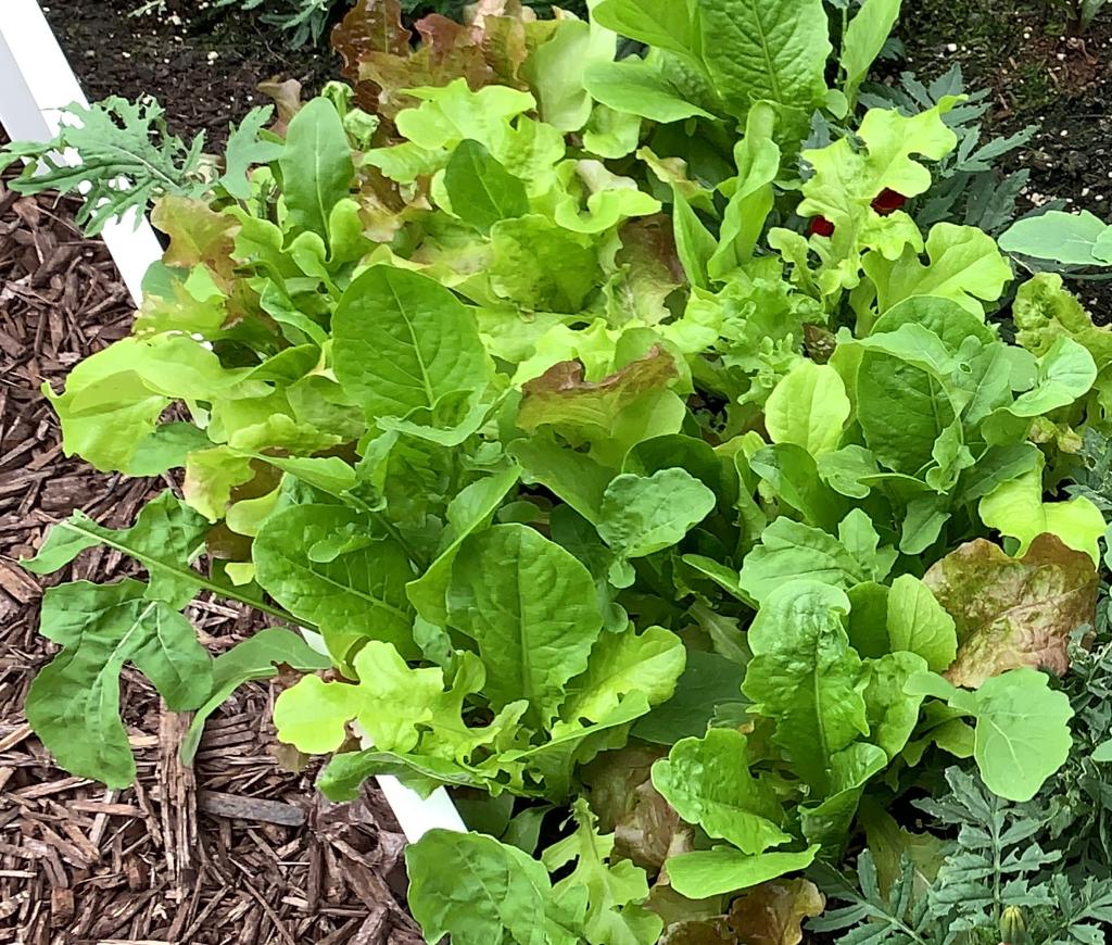 For a big part of the year, I have arugula, kale, chard and salad greens growing in my garden and I use the baby greens in my salads. As kale and chard grow bigger and leaves are no longer tender, I stop using those for salads. Spring and fall are perfect weather to grow tender leafy greens in the Pacific Northwest. Here is a picture of tender greens growing in my garden from this spring.